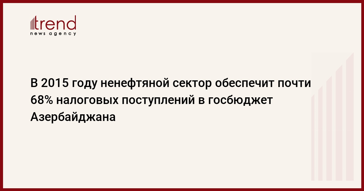 При этом 4,81 миллиарда манатов, или 67,7 процента, составят поступления от ненефтяного сектора (на 512 миллионов манатов, или 11,9 процента, больше по сравнению с прогнозом на 2014 год). Поступления от нефтяного сектора прогнозируются на уровне 2,3 миллиарда манатов (при удельном весе в 32,3 процента от налоговых поступлений).