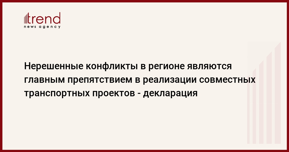 БАКУ /Trend/ - Нерешенные конфликты в регионе являются главным препятствием для регионального сотрудничества и реализации совместных транспортных проектов. Об этом говорится в совместной декларации, принятой по итогам международной конференции "Железнодорожная линия Баку-Тбилиси-Карс - новые возможности в развитии Шелкового пути".