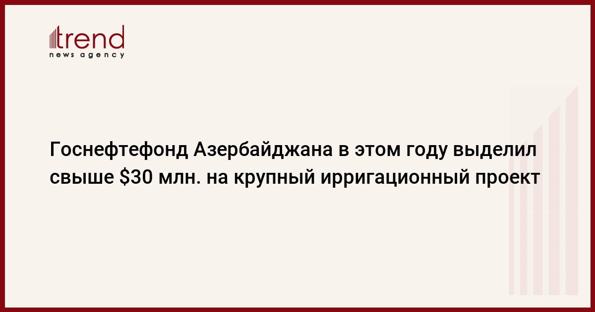 БАКУ /Trend/ - На реконструкцию Самур-Абшеронской оросительной системы по состоянию на первое октября 2014 года из Государственного нефтяного фонда Азербайджана (ГНФАР) было выделено 1,09 миллиарда манатов. Об этом говорится в сообщении, размещенном во вторник на сайте ГНФАР.