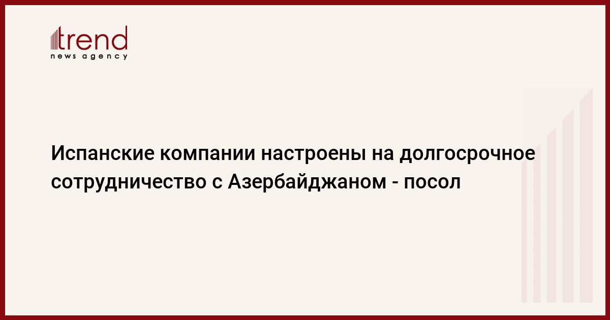 БАКУ /Trend/ - Испания и компании этой страны нацелены на развитие долгосрочного сотрудничества с Азербайджаном. Об этом сообщил Trend посол Азербайджана в Испании Алтай Эфендиев.