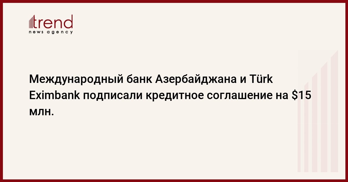 БАКУ /Trend/ - Международный банк Азербайджана (МБА) и Türkiye İhracat Kredi Bankası A.Ş. (Türk Eximbank) подписали кредитное соглашение на сумму 15 миллионов долларов.