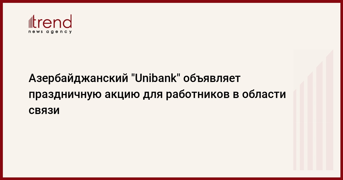 БАКУ /Trend/ - ОАО "Unibank" объявляет праздничную акцию в связи с Днем работников министерства связи и высоких технологий Азербайджана.
