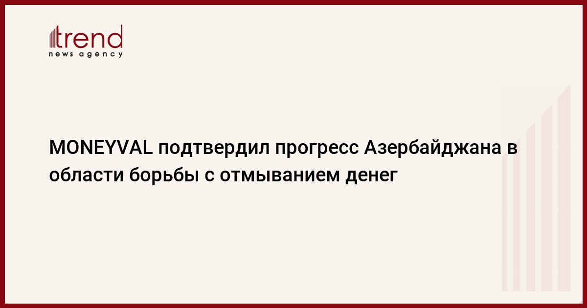 БАКУ /Trend/ - Экспертный комитет Совета Европы по оценке мер по борьбе с отмыванием денег и финансированием терроризма (MONEYVAL) утвердил отчет по оценке деятельности Азербайджана в области противодействия финансированию терроризма и отмыванию денег, полученных преступным путем.