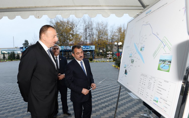 Председатель Открытого акционерного общества "Азерсу" Горхмаз Гусейнов проинформировал главу государства о том, что с момента начала реализации проекта "Реконструкция систем водоснабжения и канализации города Сабирабад" по настоящее время в городе был построен 130-километровый участок спроектированной внутренней водной сети протяженностью 151 километр, по 3640 адресам установлены домовые подключения. В целях ведения точного учета использования услуг водоснабжения и канализации предусмотрено обеспечить каждого абонента счетчиком типа "смарт-карт". В настоящее время продолжается строительство распределительной водной сети и двух водохранилищ вместимостью по 5 тысяч кубометров. Как продолжение проекта, в Сабирабаде будет построена канализационная сеть протяженностью 135 километров. В целях очистки и нейтрализации сточных вод в окрестностях города Сабирабад будет сооружена водоочистная установка производительностью 80 тысяч кубометров в сутки. В будущем здесь также будут очищаться и нейтрализоваться сточные воды города Саатлы. Реализация проекта завершится в 2017 году.