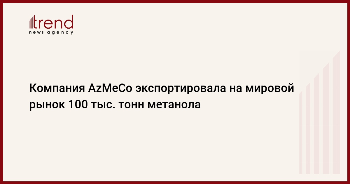 БАКУ /Trend/ - Азербайджанская метанольная компания (AzMeCo) с августа 2014 года экспортировала на мировые рынки 100 тысяч тонн произведенного метанола, говорится в сообщении компании, распространенном в четверг.