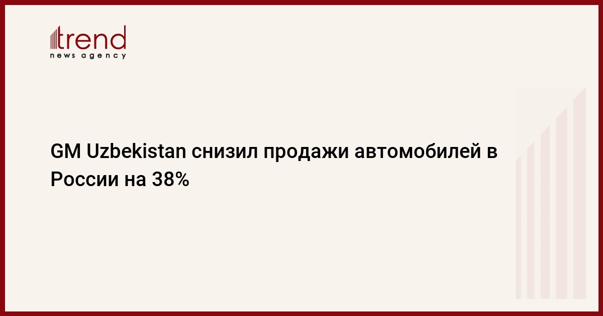 ТАШКЕНТ /Trend/ - СП "GM Uzbekistan" (бывшее АО "УзДЭУавто", город Асака, Андижанская область) в 2014 году снизило продажи автомобилей в России - основном экспортном рынке автозавода - на 38 процентов по сравнению с 2013 годом - до 37,695 тысячи единиц, согласно данным Комитета автопроизводителей Ассоциации европейского бизнеса.