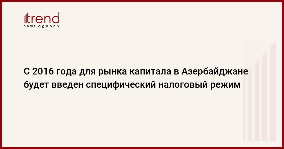 С 2016 года для рынка капитала в Азербайджане будет введен специфический налоговый режим