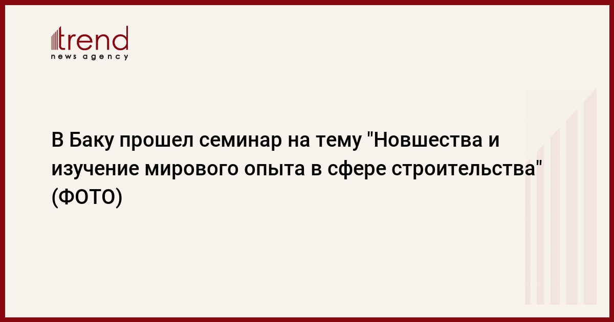 БАКУ /Trend/ - При организационной поддержке компаний "ULTRA Technologies" и "Future Network Development" (FND) состоялся первый в Азербайджане семинар на тему "Новшества и изучение мирового опыта в сфере строительства".