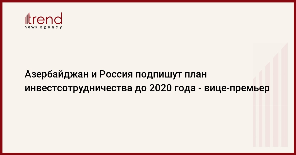 БАКУ /Trend/ - Азербайджан и Россия планируют в первой половине 2015 года подписать план сотрудничества в инвестиционной сфере до 2020 года. Об этом сказал журналистам во вторник вице-премьер правительства РФ Аркадий Дворкович, находящийся в Баку с однодневным визитом.