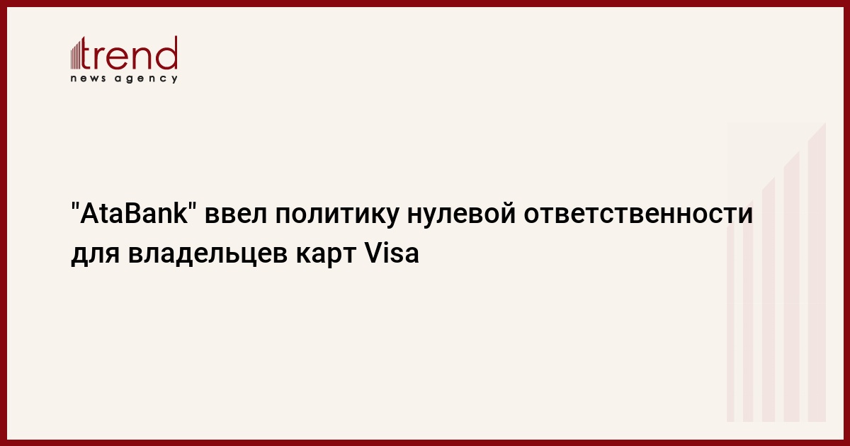 БАКУ /Trend/ - ОАО "AtaBank" ввел политику нулевой ответственности для владельцев карт Visa.