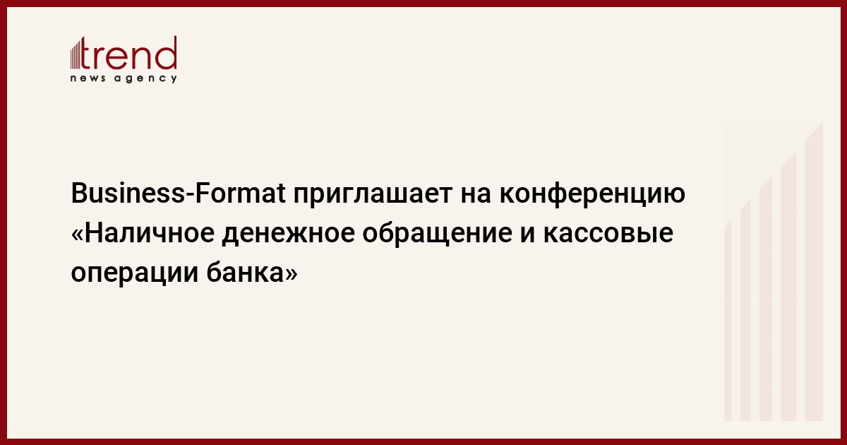 Являясь организаторами конференции, компания "BUSINESS-FORMAT" приглашает Вас и ваших коллег принять участие в работе IV Международной Конференции "Наличное денежное обращение и кассовые операции банка", которая в этом году состоится 26 - 27 марта в Минске в "Hotel Europe" 5* (www.hoteleurope.by).