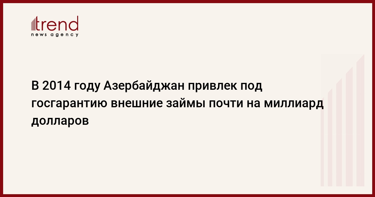 БАКУ /Trend/ - В 2014 году правительство Азербайджана подписало с международными финансово-кредитными организациями 12 кредитных соглашений по привлечению под государственную гарантию 978,3 миллиона долларов на финансирование различных проектов.