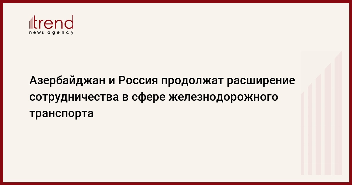 БАКУ /Trend/ - Азербайджан и Россия продолжат расширение сотрудничества в сфере железнодорожного транспорта.