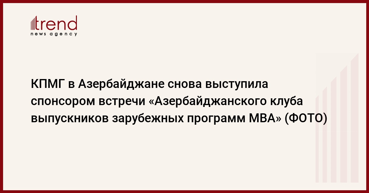 16 апреля в Баку состоялось очередное заседание "Азербайджанского клуба выпускников зарубежных программ MBA", спонсором которого стала КПМГ в Азербайджане. Количество участников "Клуба" с каждым мероприятием увеличивается: он является профессиональным сообществом и дает возможность не только установить деловые отношения с экспертами различных отраслей экономики, но и принять участие в обсуждении актуальных для бизнес-сообщества тем. На этот раз заседание посетили более 40 гостей - предпринимателей, менеджеров высшего звена, руководителей и специалистов из различных сфер бизнеса, а также госструктур.