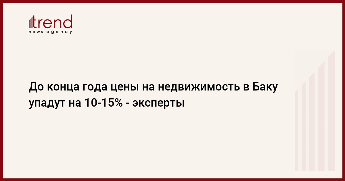 Как сообщил во вторник Trend главный специалист оценочной компании "Koneko" Вюгар Орудж, до конца года стоимость недвижимости в столице упадет приблизительно на 10-15 процентов.