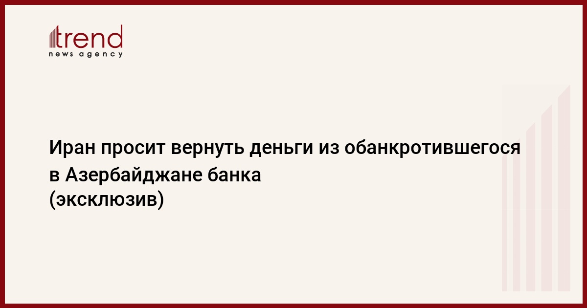 ТЕГЕРАН /Trend/ - Иран обратился к правительству и Центральному банку Азербайджана (ЦБА) по вопросу возвращения средств иранских юридических лиц, оставшихся на счетах обанкротившегося "Royal Bank".