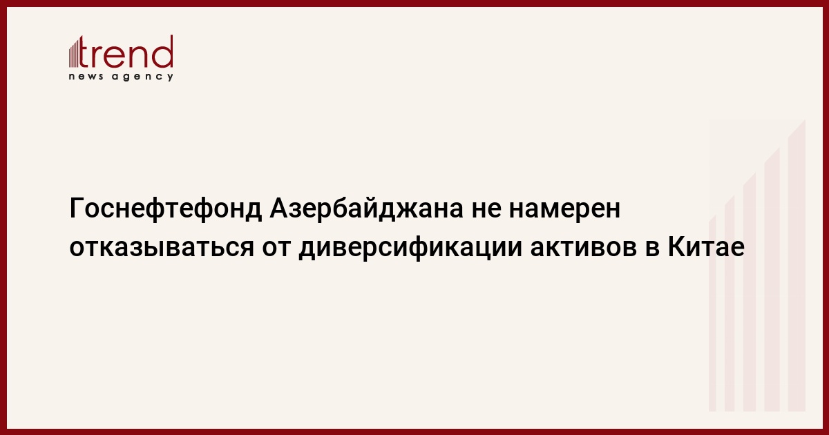 Госнефтефонд Азербайджана не намерен отказываться от диверсификации активов в Китае