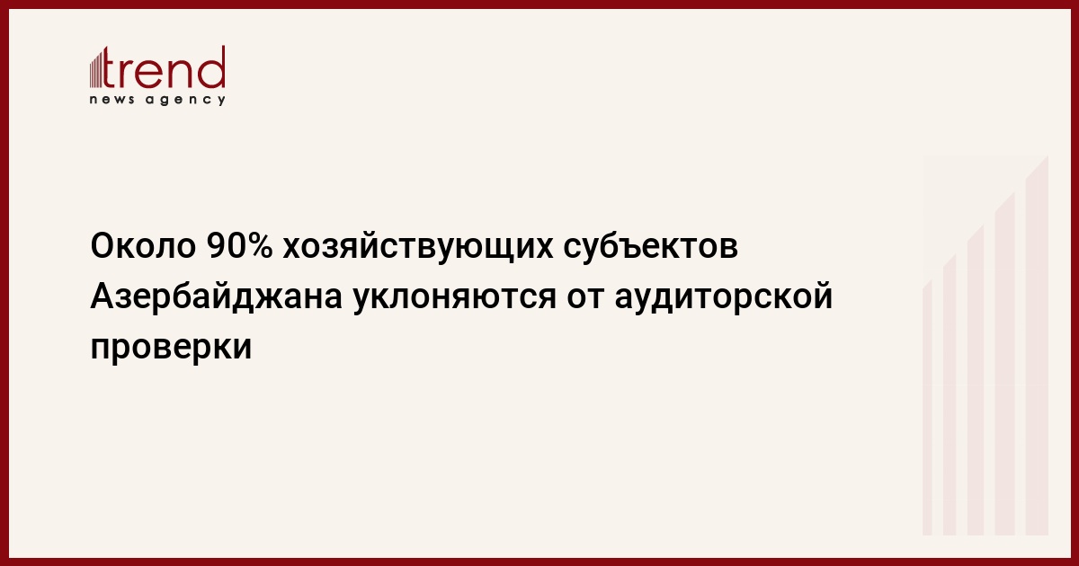 "На сегодняшний день из общего количества хозяйствующих субъектов в Азербайджане аудиторскую проверку проходят около 10 процентов. Остальные не предоставляют свою финансовую отчетность аудиторским компаниям. В эти 10 процентов входят в основном банки и страховые компании, а также ряд муниципалитетов. Остальные хозяйствующие субъекты, будь то акционерные общества, общества с ограниченной ответственностью, относятся к аудиту весьма пренебрежительно", - сказал Новрузов.