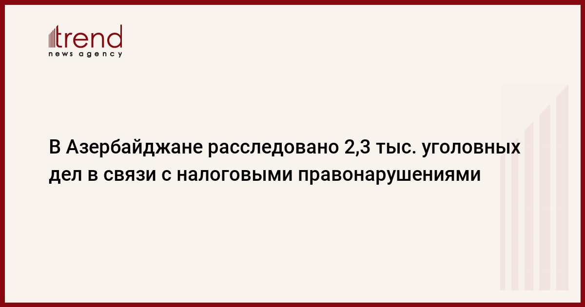 БАКУ /Trend/ - В январе-октябре 2015 года министерство по налогам Азербайджана расследовало почти 2,3 тысячи уголовных дел в связи с налоговыми правонарушениями.