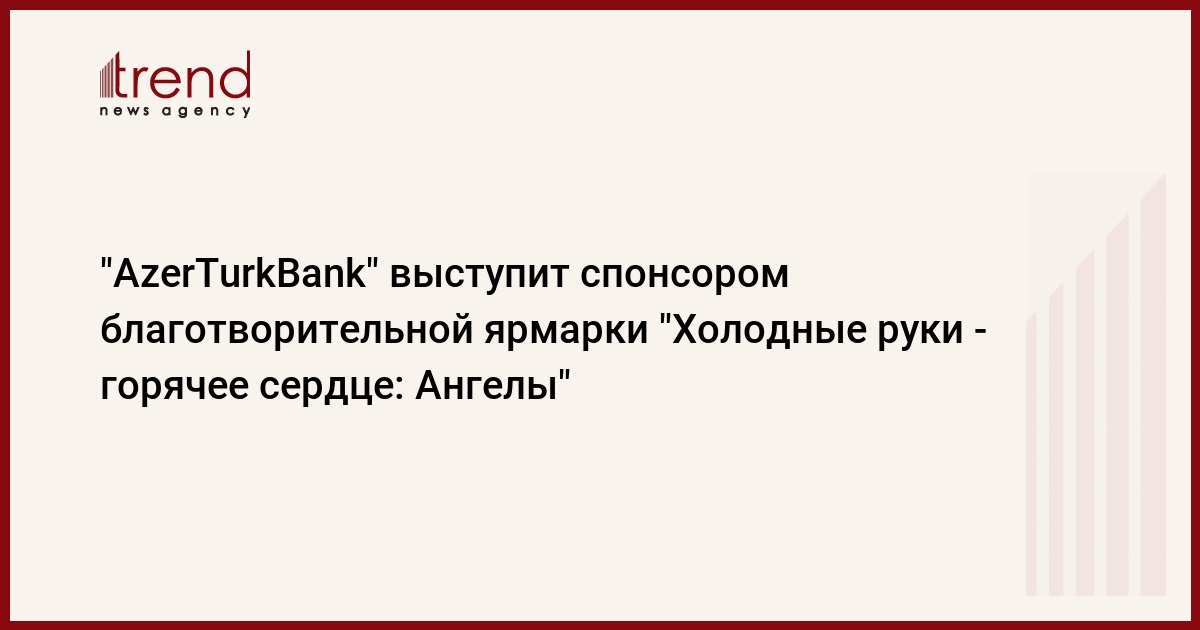 ОАО "AzerTurkBank" примет участие в качестве спонсора новогодней благотворительной ярмарки "Soyuq Əllər, İsti Ürək: Mələklər" ("Холодные руки - горячее сердце: Ангелы"), проводимой со стороны "Nargis Fund" при организационной и спонсорской поддержке Amapola Exclusive Events.