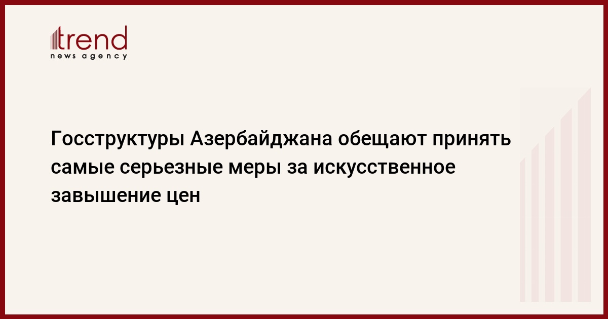 БАКУ /Trend/ - Для предотвращения завышения цен и дефицита товаров, искусственно создаваемого хозяйствующими субъектами после изменения курса маната, а также для своевременного обнаружения и предотвращения таких негативных моментов, как монополия и коррупция будут приняты специальные меры.