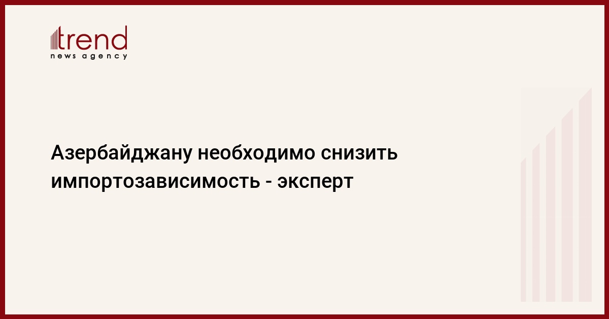 БАКУ /Trend/ - Азербайджану необходимо снизить импортозависимость и усилить продовольственную безопасность страны, сказал Trend в четверг доктор экономических наук, эксперт в области экономики, профессор Захид Мамедов.