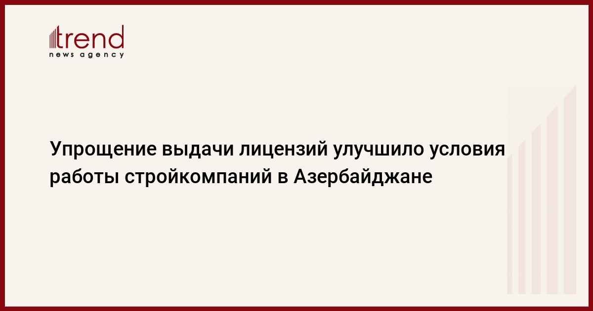 БАКУ /Trend/ - Упростив процесс выдачи лицензий, Президент Азербайджана Ильхам Алиев создал очень хорошие условия для работы строительных компаний, для деятельности которых необходима лицензия, сказал в субботу Trend директор азербайджанской строительной фирмы Qartal Шахин Мамедов.