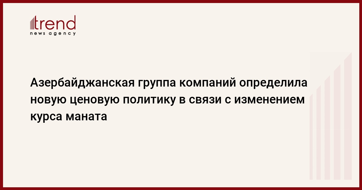 БАКУ /Trend/ - Азербайджанская группа компаний Veyseloglu определила новую ценовую политику в связи с изменением курса маната, говорится в распространенном в субботу сообщении Veyseloglu.