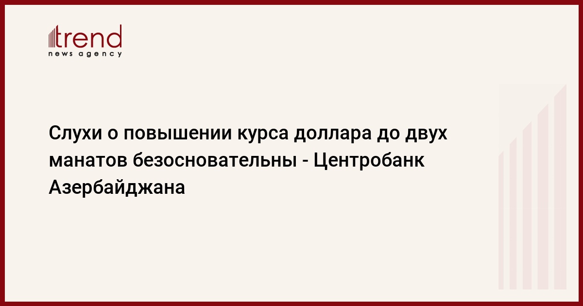 БАКУ /Trend/ - Слухи о повышении курса доллара до двух манатов являются безосновательными, сказал во вторник глава Центрального банка Азербайджана (ЦБА) Эльман Рустамов на заседании парламента страны.