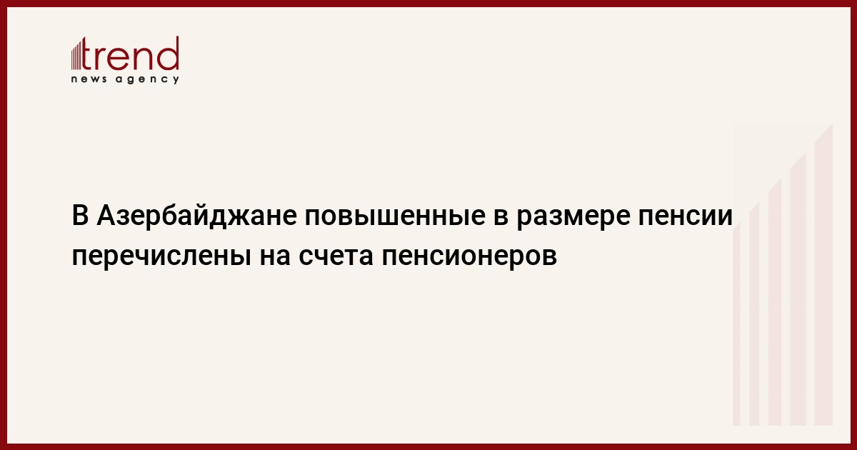 БАКУ /Trend/ - Пенсии, размер которых с первого февраля текущего года был повышен в соответствии с распоряжением Президента Азербайджана, уже перечислены на счета пенсионеров вместе с надбавленной частью. Об этом сказал в пятницу журналистам председатель Госфонда социальной защиты Эльман Мехтиев.