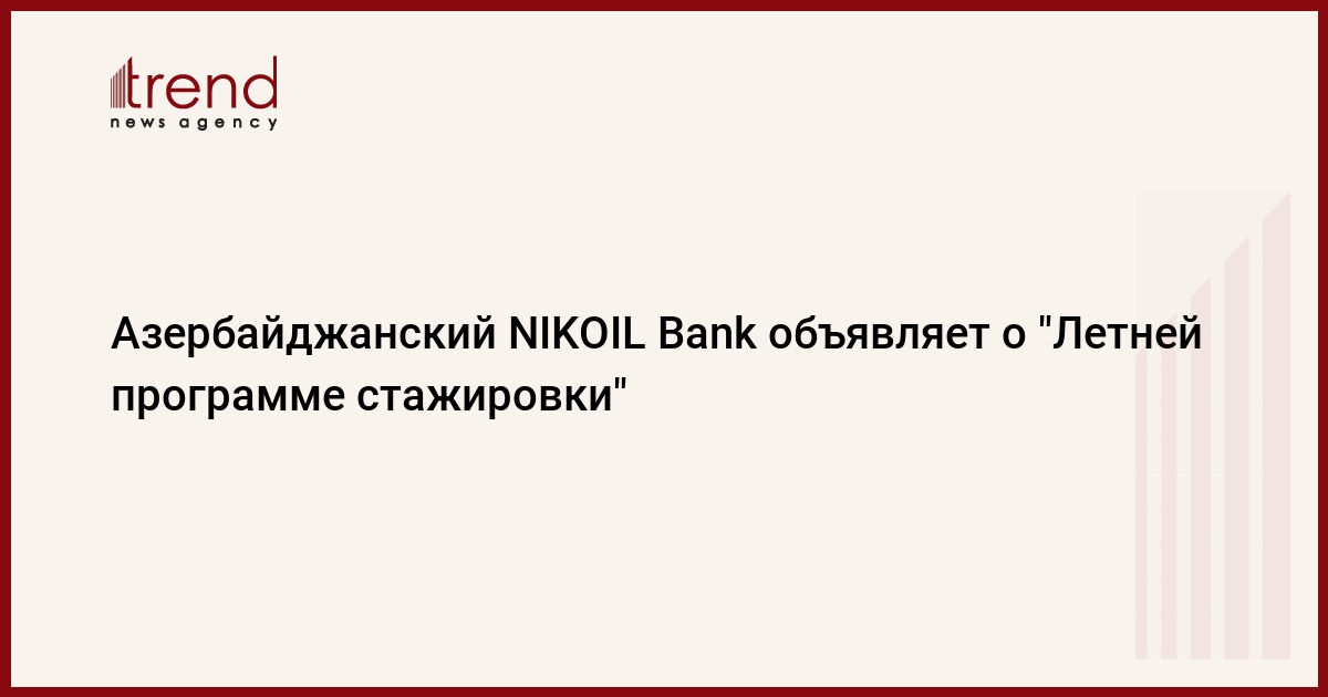 БАКУ /Trend/ - NIKOIL Bank объявляет о запуске "Летней программы стажировки" для выпускников столичных и региональных высших учебных заведений, говорится в сообщении банка во вторник.