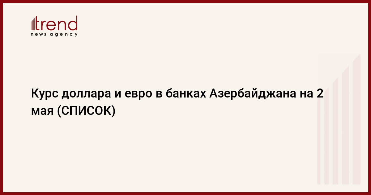 Trend представляет курс маната по отношению к доллару и евро в банках страны на второе мая 2016 года: