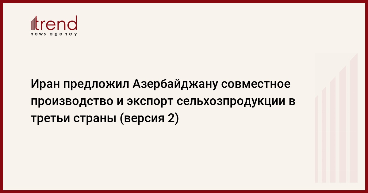 БАКУ /Trend/ - Иран предложил Азербайджану начать совместное производство сельскохозяйственной продукции и экспортировать ее в третьи страны.