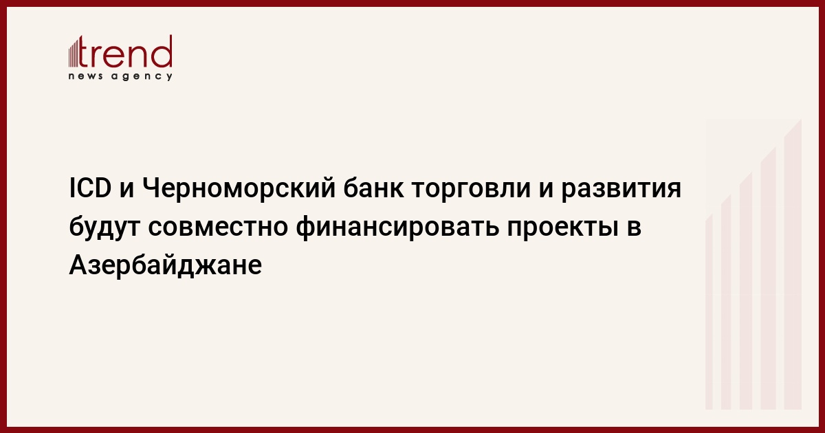 БАКУ /Trend/ - Исламская корпорация по развитию частного сектора (ICD) и Черноморский банк торговли и развития (ЧБТР) будут совместно финансировать проекты в Азербайджане, Албании и Турции, говорится в сообщении ЧБТР, опубликованном на его сайте в четверг.