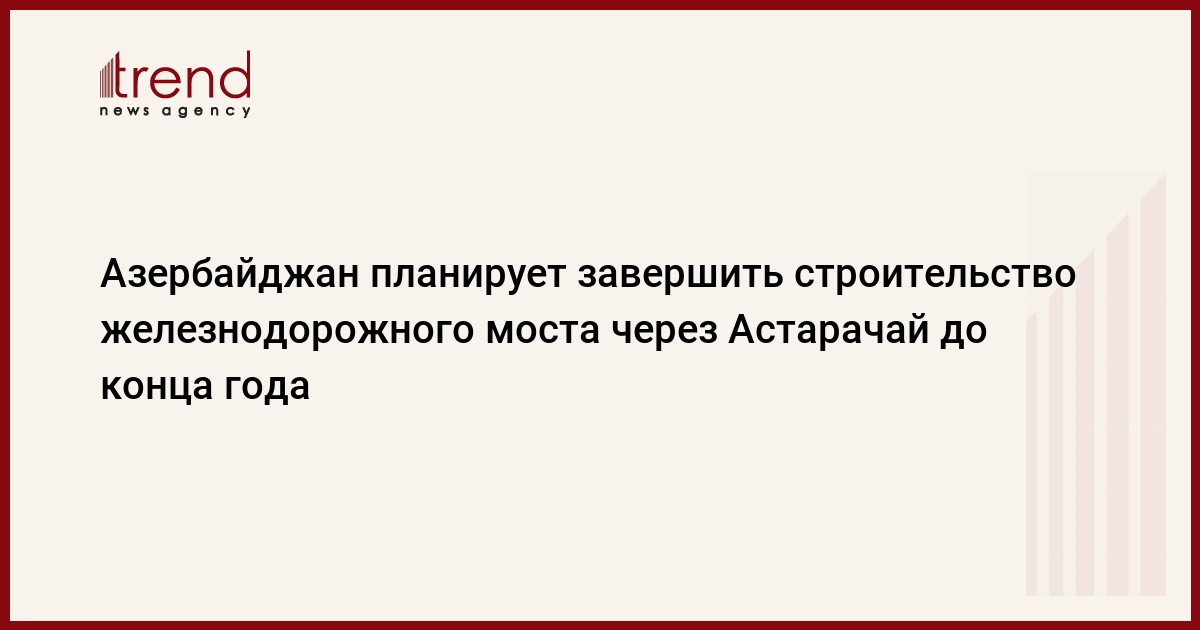 Азмамедов сообщил, что строительство линии железной дороги и моста планируется завершить до конца текущего года.