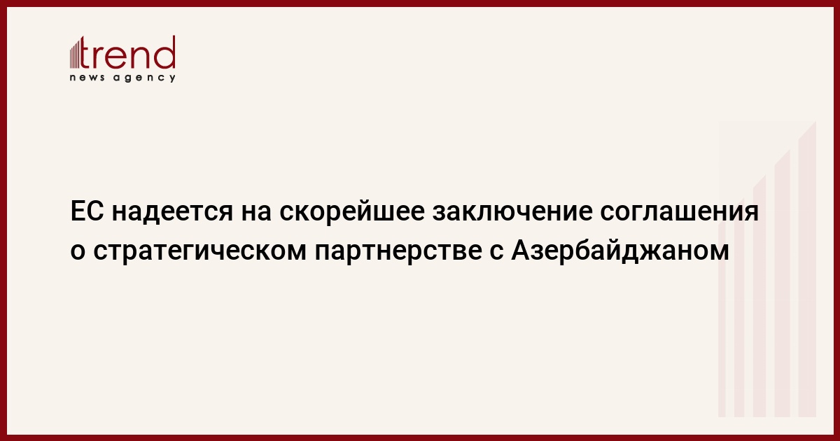 БАКУ /Trend/ - Европейский союз (ЕС) надеется на скорейшее подписание нового соглашения о стратегическом партнерстве с Азербайджаном.