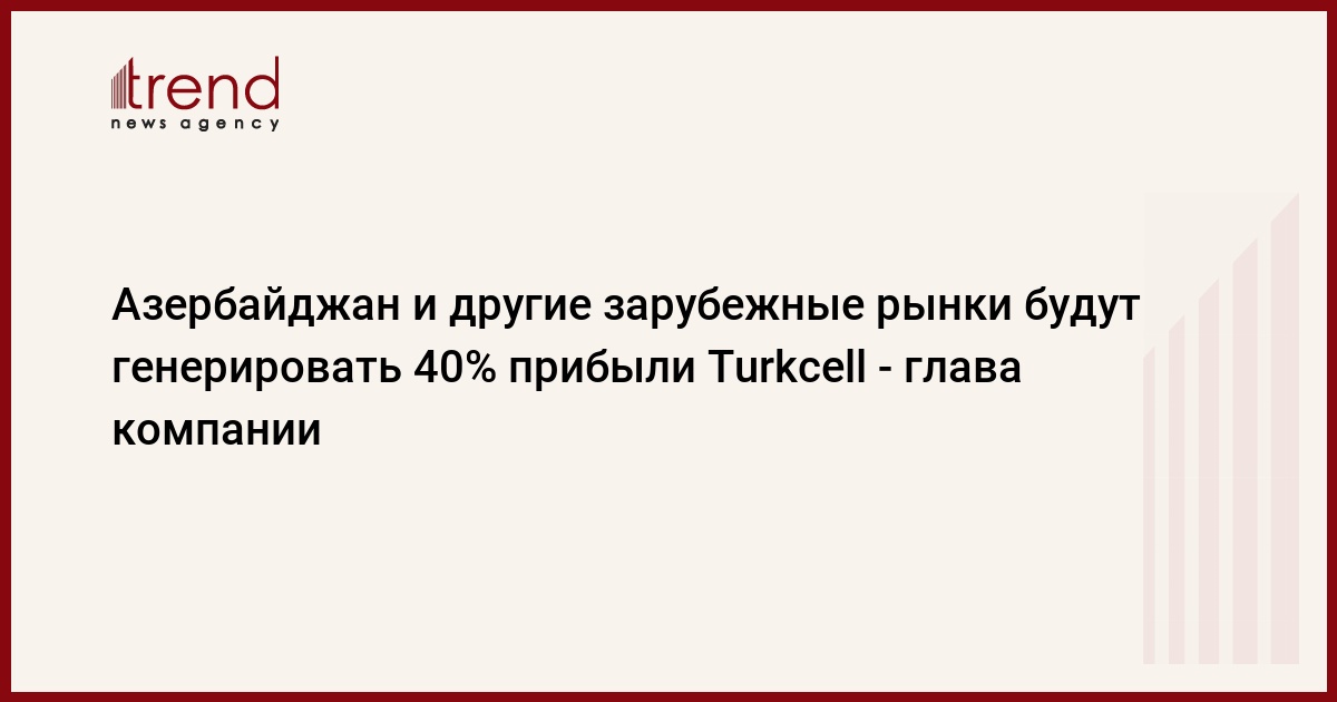 БАКУ /Trend/ - Крупнейший мобильный оператор Турции Turkcell хочет генерировать 40 процентов своей прибыли за счет зарубежных рынков, среди которых Ирак, Иран, Азербайджан, Балканские страны, сказал в интервью Wall Street Journal генеральный директор компании Каан Терзиоглу.