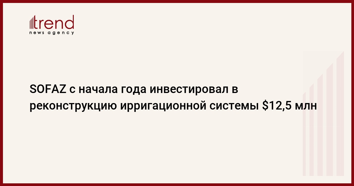 БАКУ /Trend/ - Государственный нефтяной фонд Азербайджана (SOFAZ) в первом полугодии 2016 года направил на финансирование проекта реконструкции ирригационной системы Самур-Абшерон 19,6 миллиона манатов (12,49 миллиона долларов), говорится в отчете о деятельности фонда за первые шесть месяцев года.