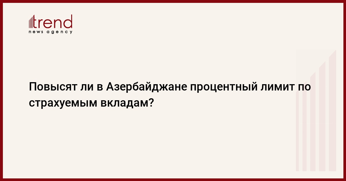 “Вопрос повышения процентного лимита по страхуемым вкладам пока не стоит на повестке дня. Как вы знаете, в настоящее время верхняя планка годовой процентной ставки по страхуемым вкладам в национальной валюте составляет 12 процентов, а Центральный банк только сейчас поднял учетную ставку до 9,5 процента”, - сказал Джавадов.