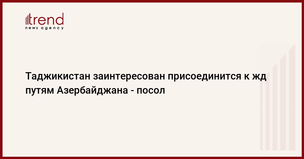 БАКУ /Trend/ - Таджикистан заинтересован в соединении будущей железной дороги Таджикистан-Афганистан-Туркменистан с железнодорожными путями Азербайджана, сказал посол Таджикистана в Азербайджане Зохир Саидов в интервью Trend.