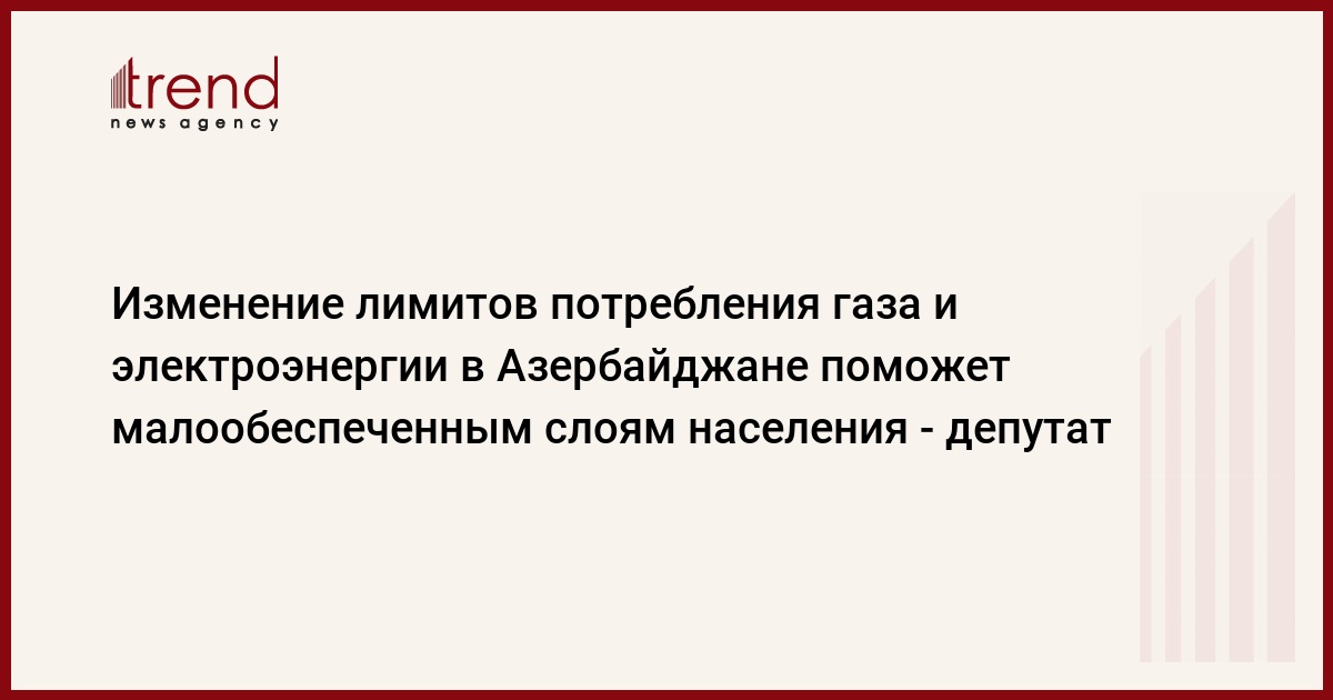 БАКУ /Trend/ - Повышение лимитов льготного потребления газа и электроэнергии в Азербайджане поможет социально уязвимым и малообеспеченным слоям населения, сказал в пятницу Trend депутат Милли Меджлиса (парламента) Азербайджана Руфат Гулиев.