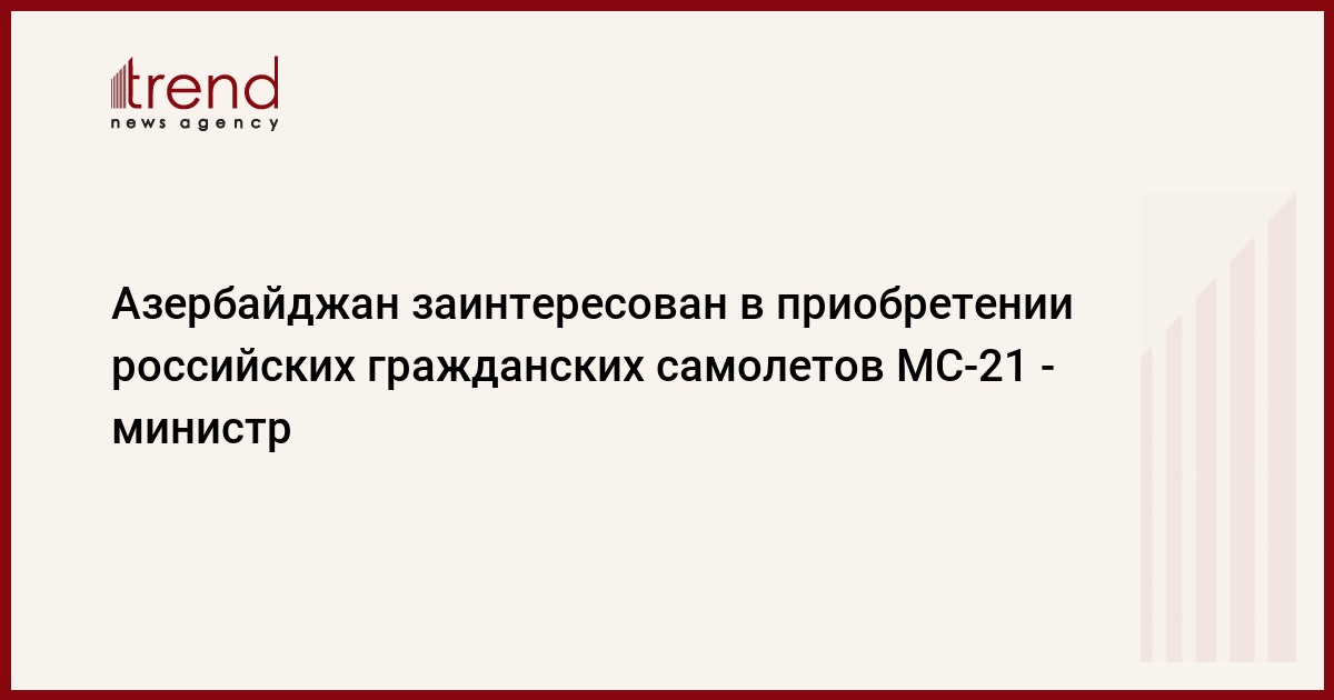 БАКУ /Trend/ - Азербайджан заинтересован в российских гражданских самолетах МС-21, заявил в интервью РИА Новости министр иностранных дел страны Эльмар Мамедъяров.