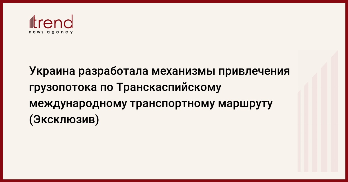 БАКУ /Trend/ - Украина разработала механизмы привлечения дополнительного грузопотока по Транскаспийскому международному транспортному маршруту (ТМТМ).