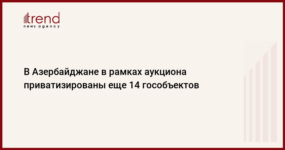 БАКУ /Trend/ - На состоявшемся 28 марта очередном аукционе Государственного комитета по вопросам имущества Азербайджана было приватизировано 14 гособъектов, говорится в сообщении Госкомимущества, распространенном во вторник.