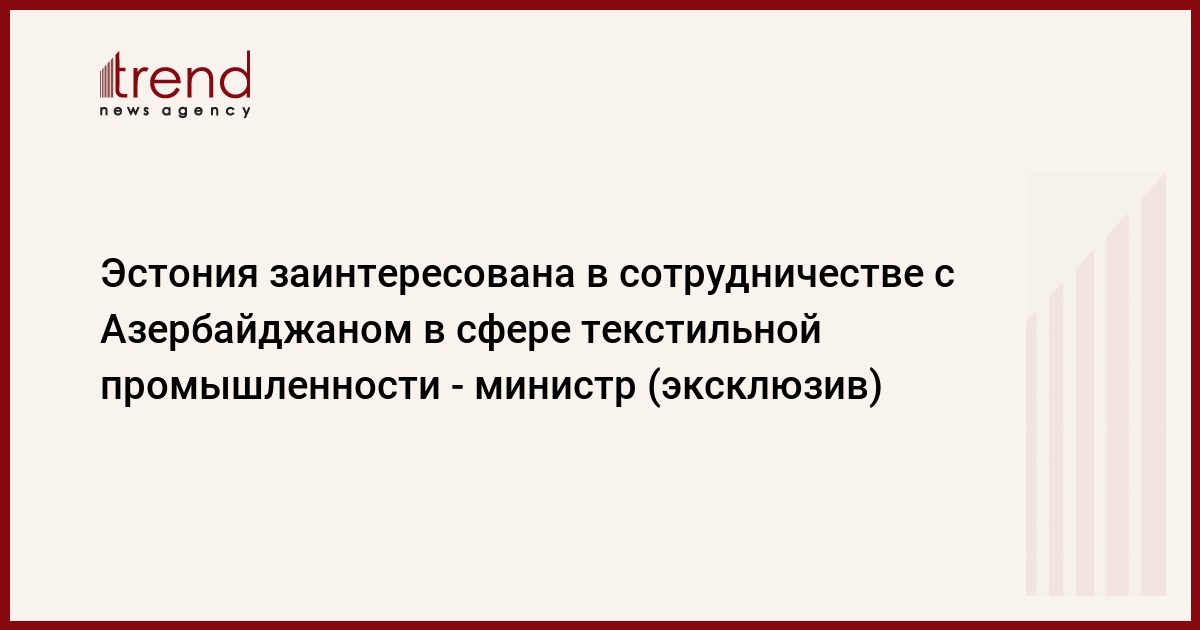 БАКУ /Trend/ - Эстония заинтересована в сотрудничестве с Азербайджаном в сфере текстильной промышленности, сказал в эксклюзивном интервью Trend министр государственного управления Эстонии Михаил Корб.