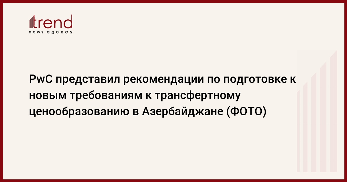 «В условиях все более прозрачного мира мы признаем это новое для Азербайджана положение по трансфертному ценообразованию, как однозначно положительный шаг», - сказал партнер по налоговым и юридическим вопросам PwC Азербайджан Майкл Аерн.