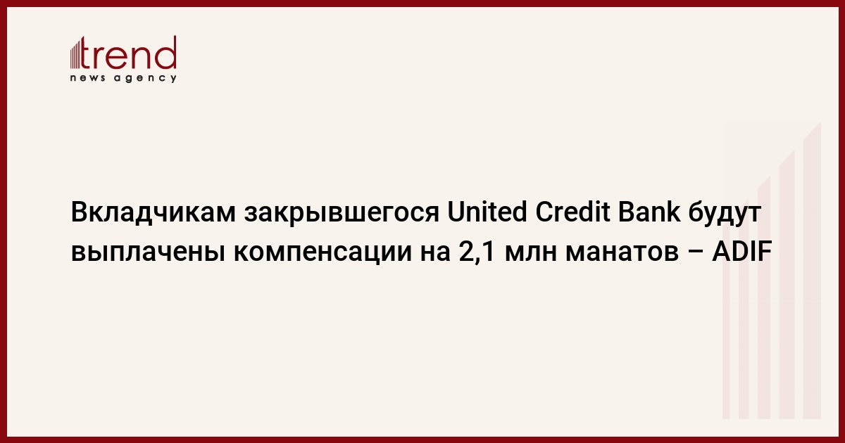ADIF начнет выплаты компенсаций вкладчикам United Credit Bank 19 апреля. Клиенты банка смогут получить свои средства в офисе ADIF по адресу: проспект Бабека, 16.