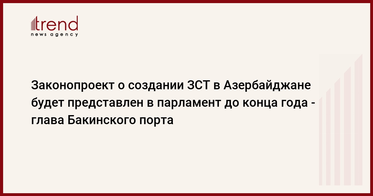 БАКУ /Trend/ - Законопроект о создании зоны свободной торговли (ЗСТ) в Азербайджане будет представлен в Милли Меджлис до конца года, сказал журналистам в понедельник гендиректор ЗАО "Бакинский международный морской торговый порт" Талех Зиядов.