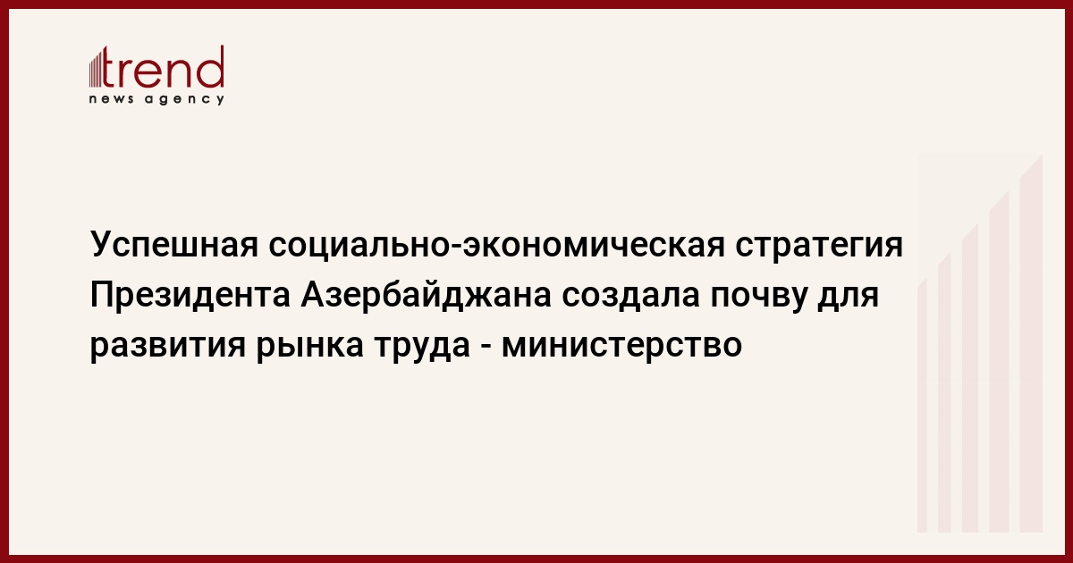 БАКУ /Trend/ - Успешная социально-экономическая стратегия развития Президента Азербайджана Ильхама Алиева, создала условия для экономической диверсификации, сформировав почву для проведения комплекса мер по трудовой занятости и развитию рынка труда, сказал в пятницу Trend заведующий отделом министерства труда и социальной защиты населения Эльман Бабаев.