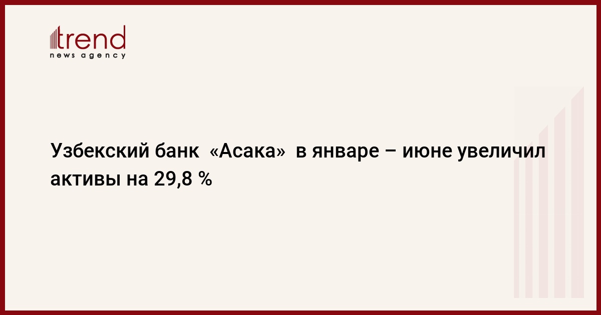 ТАШКЕНТ /Trend/ - Активы акционерного коммерческого банка (ГАКБ) «Асака», второго в Узбекистане по размеру основных банковских показателей, рассчитанные по национальным стандартам бухучета (НСБУ), составили 13,561 триллиона сумов по итогам января – июня 2017 года, согласно отчету банка, обнародованному на едином портале корпоративной информации.
